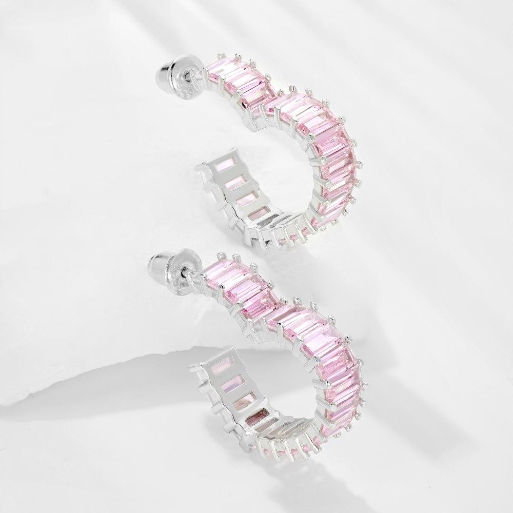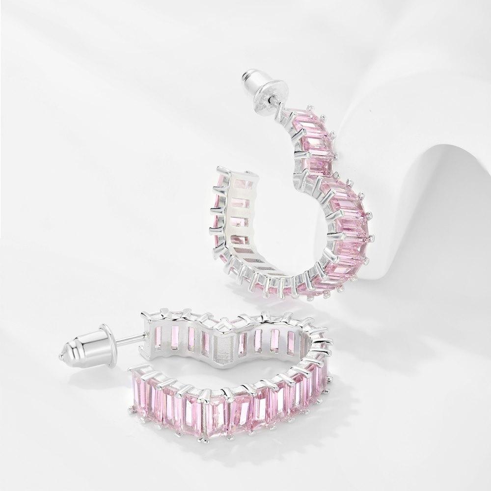 104【BETXEU】S925 Heart-shaped Earrings for Women Rectangular Pink Zircon