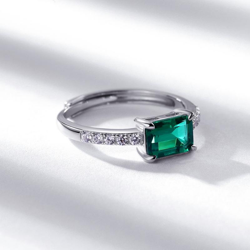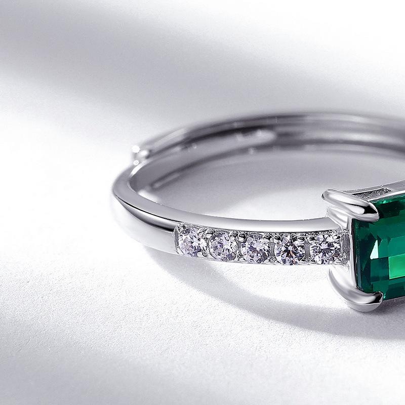 222 [BETXEU ] S925 Silver Geometric Rectangular Colored Stone Ring