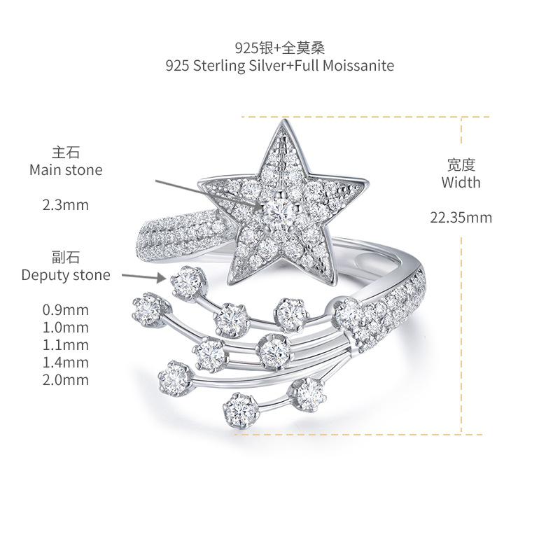 248 [BETXEU] five-pointed star moissanite open ring
