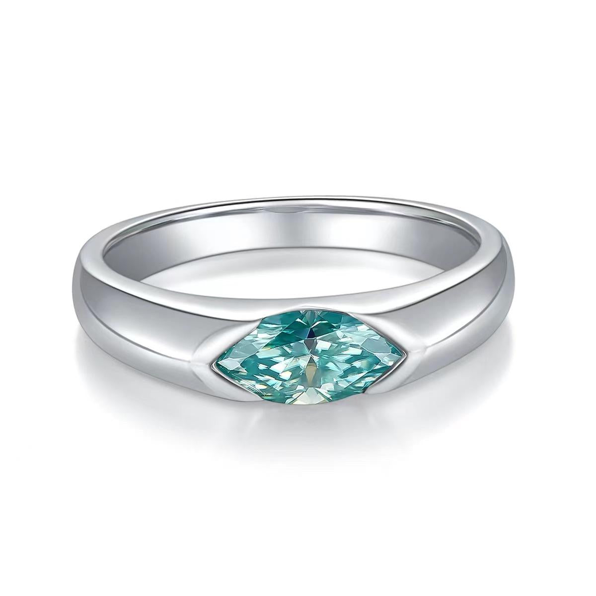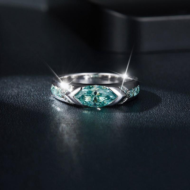 86【BETXEU】 The eye of horus Blue lake water Moissanite Blue-Green Marquise Cut 1 Carat S925 RING