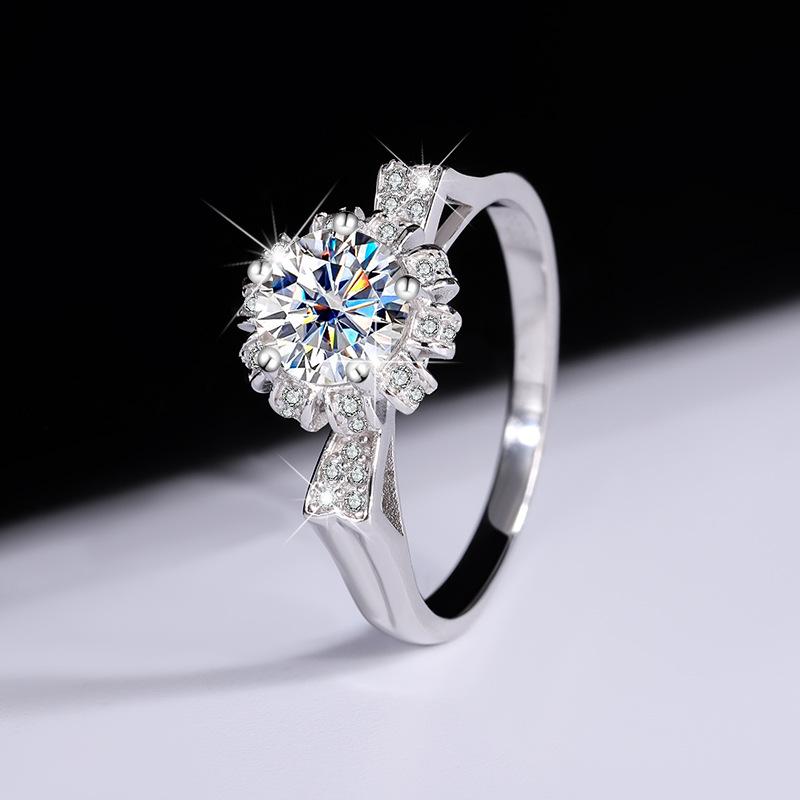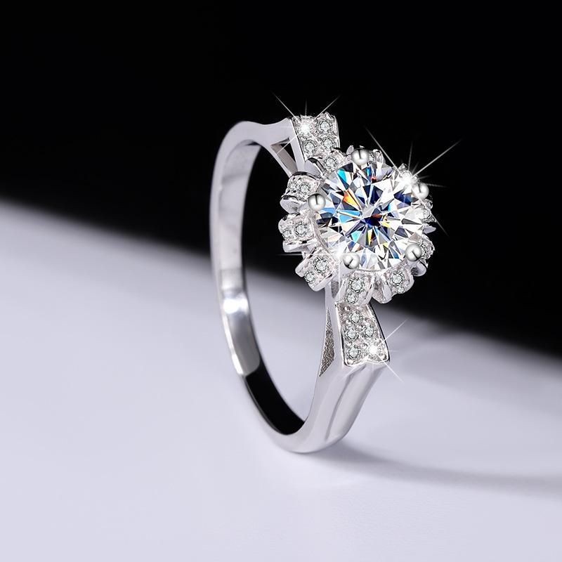 [BETXUE B17] Sterling silver moissanite cat ear bouquet ring