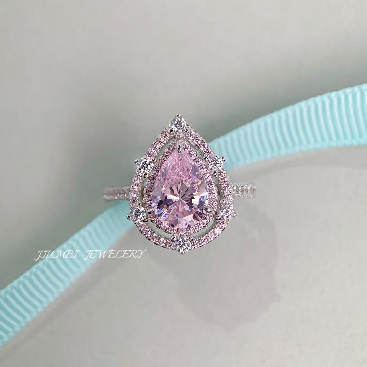 [BETXUE C07] pink pear shape S925 8A High carbon Ring