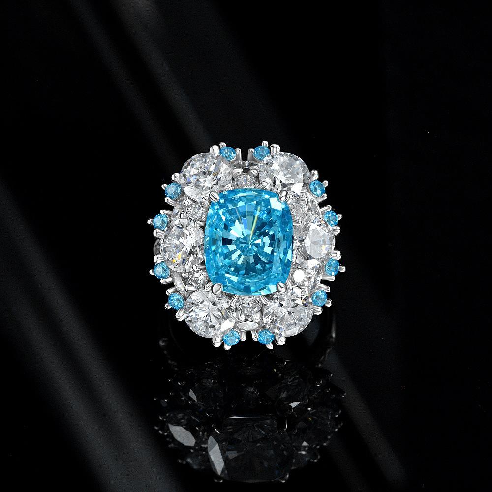 [BETXUE C81] BLUE ICE CUTTING S925 8A High carbon Ring